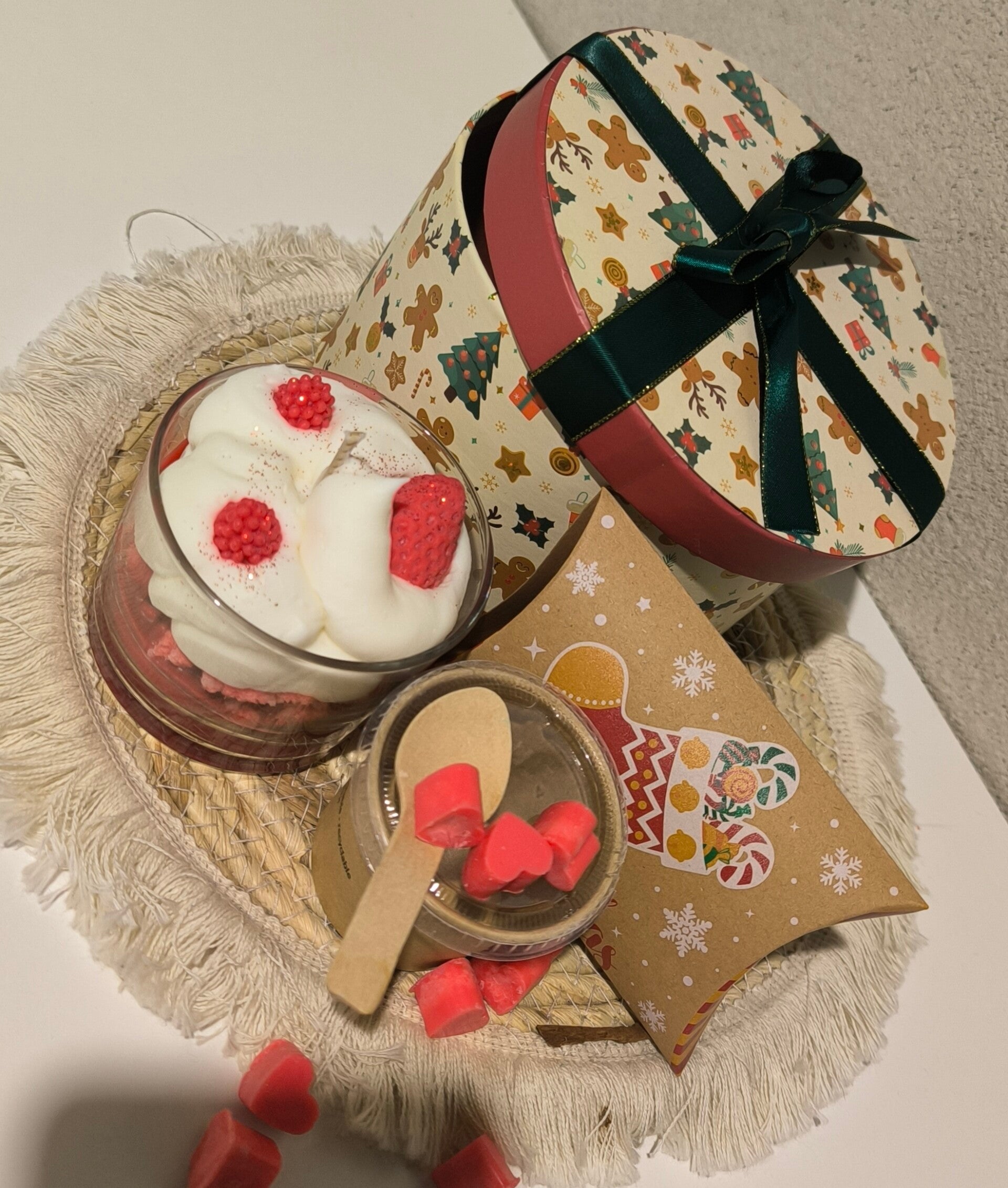 Offrez (ou offrez-vous) un moment de douceur et de gourmandise avec ce coffret de Noël parfumé, composé de trois créations artisanales réalisées avec soin.