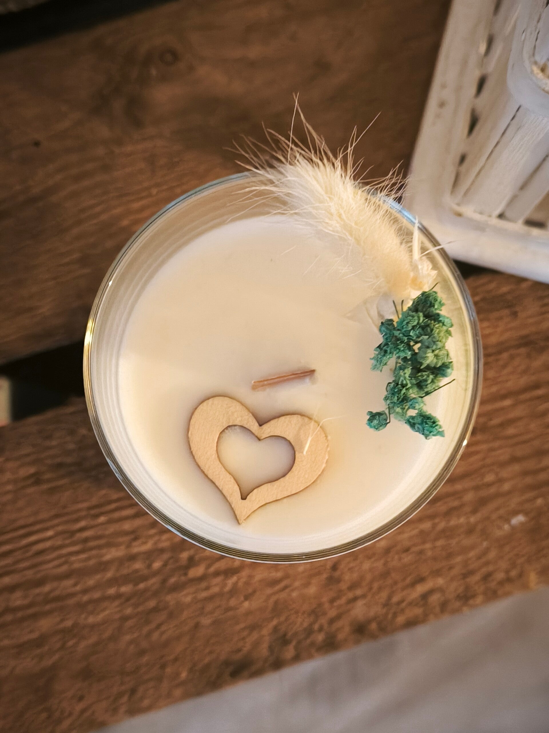 Fabriquée à la main avec de la cire de soja 100 % végétale, cette bougie respecte votre intérieur et l’environnement. Elle est sublimée par de fleurs séchées naturelles, une mèche en bois et un délicat cœur en bois, pour une finition élégante et décorative même éteinte.